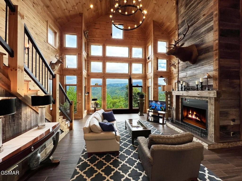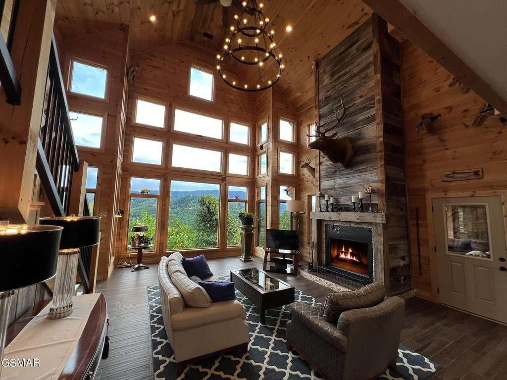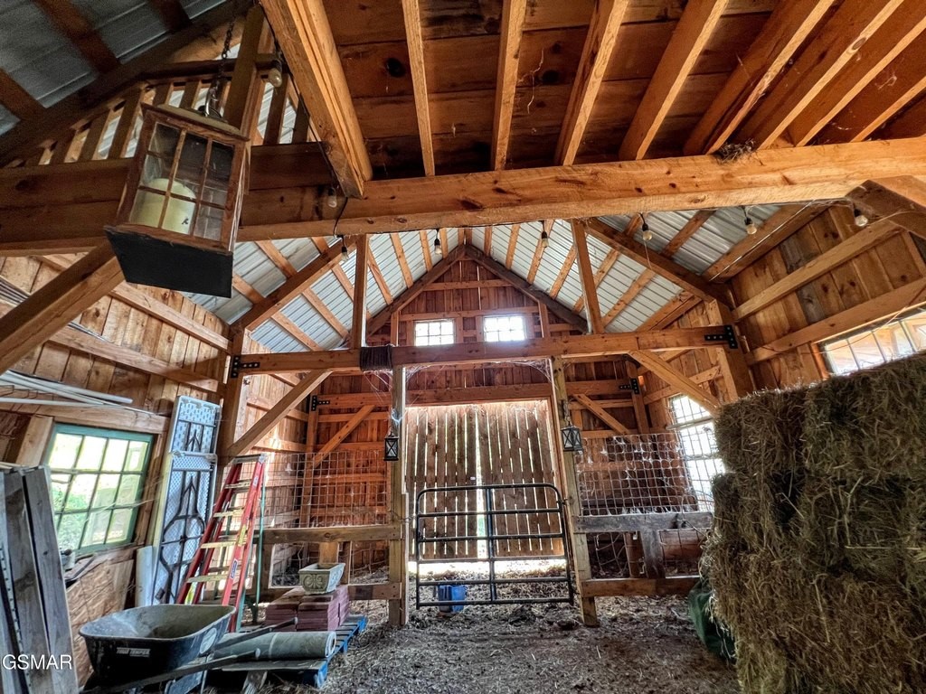 Breathtaking Mountain Estate with Expansive Acreage and Limitless Potential Welcome to your dream mountain retreat! This exquisite 5,070 sq. ft. home, perched atop 54.5 acres of private land, offers stunning panoramic views of majestic mountains and serene valleys. Combining luxury living with endless possibilities, this property is perfect for those seeking a private residence, a profitable short-term rental, or a unique development opportunity. The land was previously reviewed for a cabin subdivision, providing an incredible investment prospect. Enjoy unobstructed views of the surrounding mountains and valleys from this secluded estate, set at the top of private acreage. The spacious 3-Level Home features 3 bedrooms and 4.5 baths, and a bonus room. The home includes two elegant suites upstairs, a main-level suite, and a lower-level suite. In addition to the kitchen and dining areas the main level offers a mudroom, a laundry/service area, and a convenient half bath. The fully finished lower level is equipped with ample storage, a dedicated office space, and a fully outfitted gym, making it ideal for work, fitness, and leisure. Expansive decking surrounds the home, with two covered seating areas-one on the main level and another on the lower level-providing perfect spots for outdoor relaxation and entertaining while taking in the spectacular views. The heart of the home is the impressive great room, featuring a wall of windows that extend to a 20-foot vaulted ceiling. This space is bathed in natural light and showcases reclaimed barnwood accents, creating a warm, rustic yet sophisticated atmosphere. Top-Quality Construction! Built with 2x6 construction for added durability, the home's windows are rated to withstand winds up to 120 mph, ensuring both safety and energy efficiency. A wind gauge on the roof, connected to a gauge in the great room, allows you to monitor weather conditions from the comfort of your home. The residence is fully wired for smart home capabilities, providing advanced control over lighting, security, and climate settings. A powerful Generac generator, capable of running for up to two weeks, is connected to the internet for seamless monitoring and exercises weekly to ensure reliability. The property features a 935-foot deep well with an owned softener system, ensuring a steady supply of high-quality water. An on-demand water heater provides instant hot water throughout the home. The home is equipped with three HVAC systems, offering zoned heating and cooling for optimal comfort year-round. The garage includes an electric car charging station, making it easy and convenient to charge your electric vehicle at home. Wait! There's more, a 1,500 sq. ft. Barn & Pastureland. The spacious barn is currently home to chickens and two cows. The barn and surrounding area offer plenty of space for storage, livestock, or potential conversion to suit your needs. A section of the property is planted with fruit trees, adding to the charm and providing an opportunity to enjoy homegrown produce. This property is more than just a home; it's an opportunity. The land is ready for potential development, making it an excellent investment for those looking to expand or create a unique mountain community. Many of the home's furnishings can be included in the sale, making this a turnkey opportunity for the right buyer. This exceptional property offers a rare combination of luxury, privacy, and potential. Whether you envision it as your personal sanctuary, a premier rental property, or a development project, this mountain estate is truly one-of-a-kind. Don't miss your chance to own a piece of paradise with stunning views, modern amenities, and limitless possibilities! See attached video or use this link: